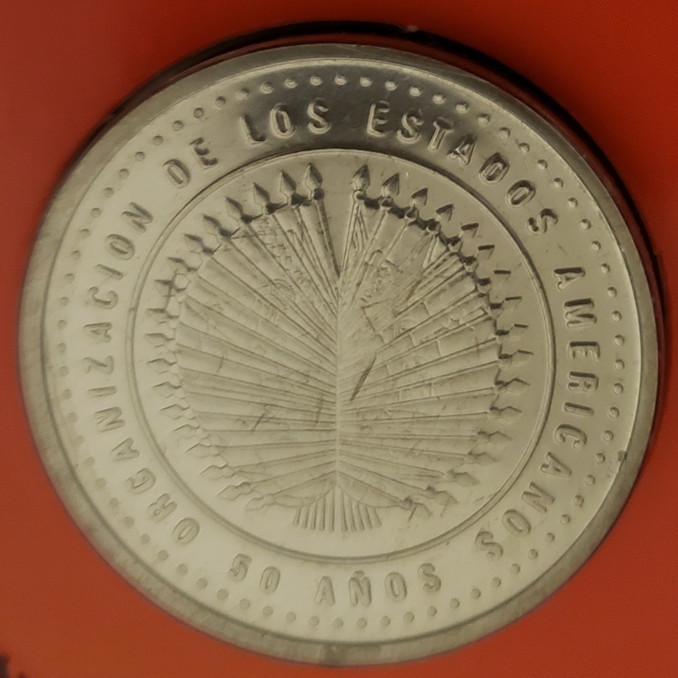 Moneda conmemorativa a 50 años de la Organización de Estados Americanos OEA, fundada en abril de 1948